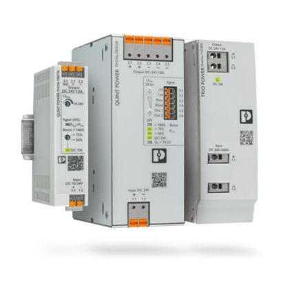 Con nuestras fuentes de alimentación alimentará su aplicación de forma fiable. Seleccione de nuestra amplia oferta de las distintas familias de productos la fuente de alimentación óptima según sus necesidades. Las fuentes de alimentación con perfil de carril se diferencian en términos de diseño, potencia y funcionalidad. Estos se han adaptado de forma óptima a los requisitos de distintas industrias, como la industria automovilística, la fabricación de maquinaria, la tecnología de procesos y la construcción de embarcaciones.