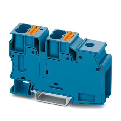 Borna de derivación, tensión nominal: 1500 V, corriente nominal: 57 A, número de conexiones: 2, tipo de conexión: Conexión push-in, 1er piso, Sección de dimensionamiento: 10 mm², sección: 0,5 mm² - 16 mm², clase de montaje: en elemento de base, color: gris