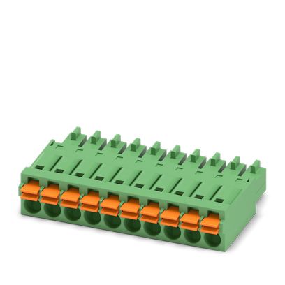 Conector para placa de circuito impreso, sección nominal: 1,5 mm², color: verde, corriente nominal: 8 A, tensión nominal (III/2): 160 V, superficie contactos: Estaño, tipo de conexión del contacto: Hembra, número de potenciales: 2, número de filas: 1, número de polos: 2, número de conexiones: 2, familia de artículos: FMC 1,5/..-STF, paso: 3,81 mm, tipo de conexión: Conexión por resorte push-in, dirección de conexión conductor/placa de circuito impreso: 0 °, sistema enchufable: COMBICON MC 1,5, bloqueo: Bloqueo por tornillo, tipo de fijación: Sujeción aérea (tornillo), tipo de embalaje: empaquetado en caja